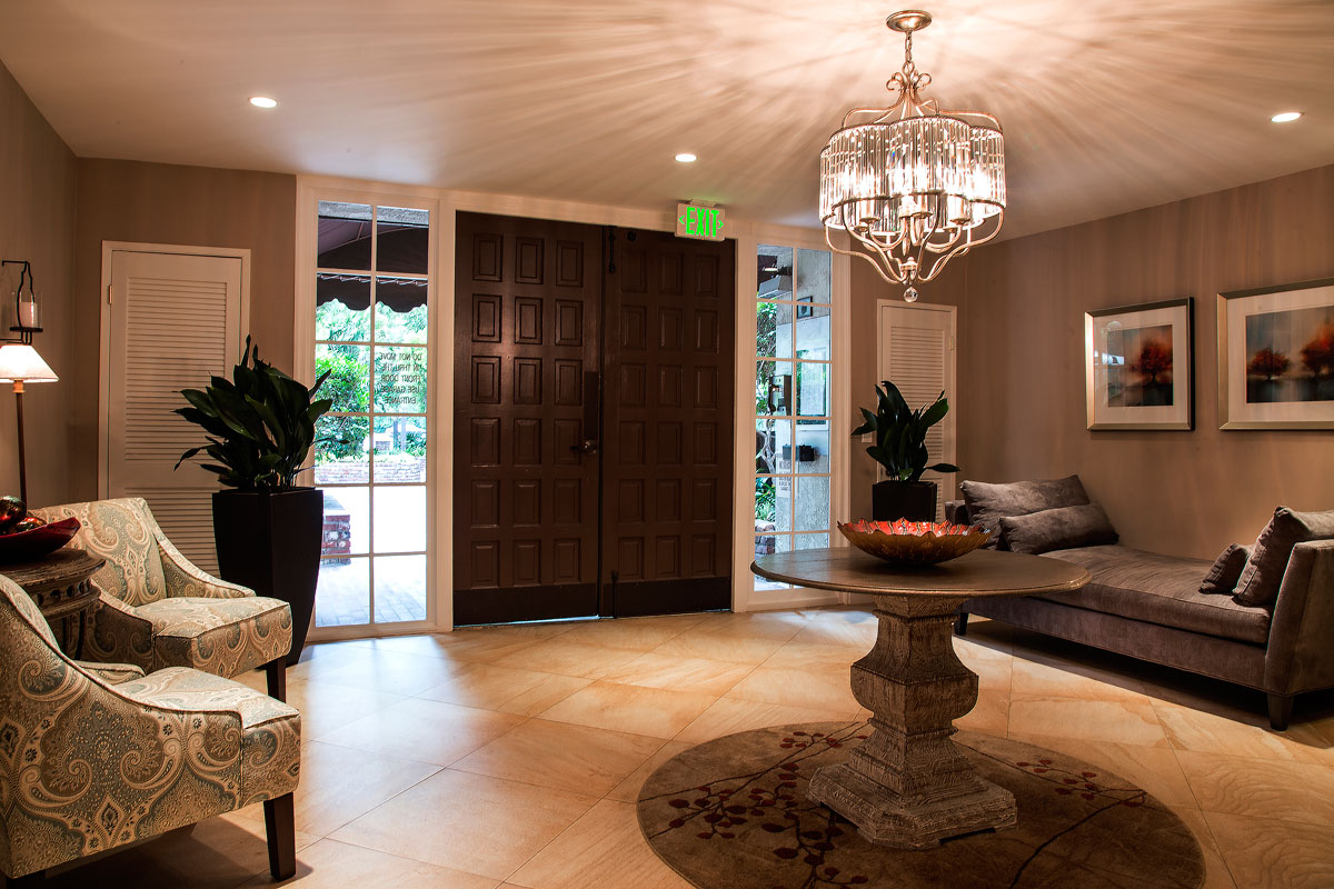 The benefits of this remodel went beyond providing a proper reception area. This transformation fostered homeowner pride and community spirit, attracted prospective buyers, increased property values, and created possibilities for special occasions, such as the holiday decorations by Gallego Design above.